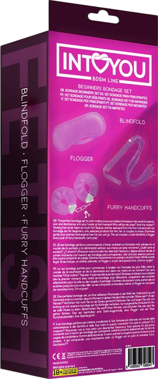 Η μάσκα αγκαλιάζει απαλά το πρόσωπο και κλείνει την όραση, αφήνοντας χώρο για όλες τις υπόλοιπες αισθήσεις να αφυπνιστούν. Οι γούνινες χειροπέδες ασφαλίζουν με μεταλλικό κούμπωμα και μετατρέπουν την παραμικρή κίνηση σε παιχνίδι ελέγχου. Το σετ ολοκληρώνεται με ένα flogger που προσθέτει ένα ερέθισμα παραπάνω: χτυπήματα που ξεκινούν τρυφερά και καταλήγουν σε καθοδηγητικό ρυθμό.