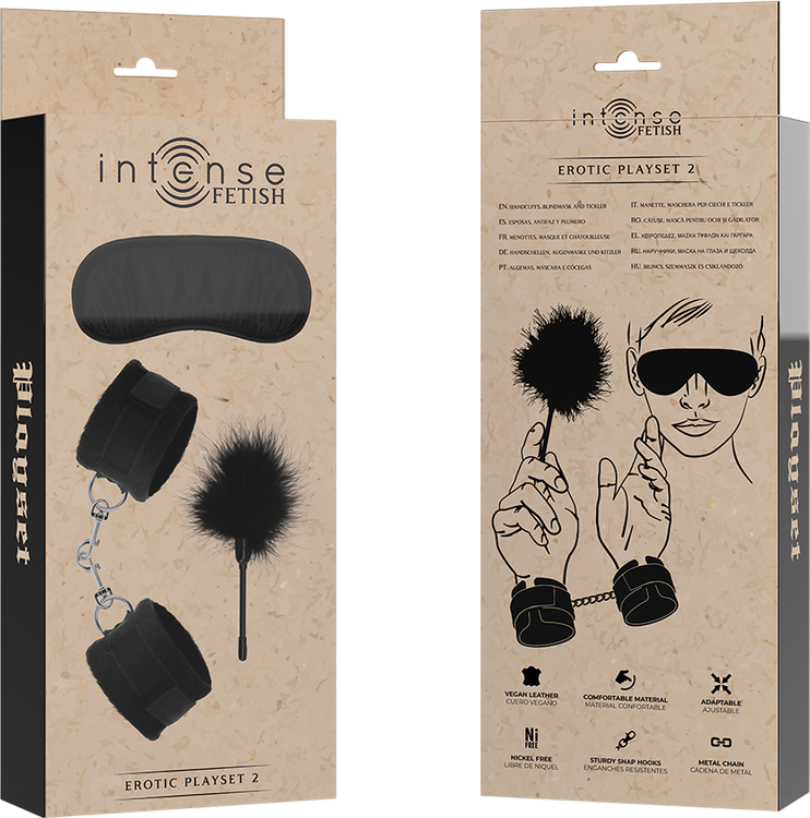 Το ερωτικό σετ INTENSE FETISH είναι ένα συναρπαστικό σύνολο που έχει σχεδιαστεί για να εξερευνήσετε τα βάθη της απόλαυσης στον κόσμο του BDSM. Αυτό το σετ συνδυάζει βασικά αξεσουάρ όπως χειροπέδες, μάσκα ματιών και tickler, όλα κατασκευασμένα από υψηλής ποιότητας υλικά.