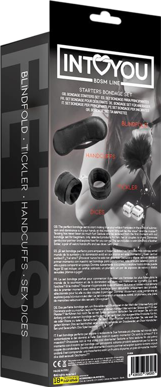 Το σετ περιλαμβάνει μάσκα με μεταξένια υφή για να κλείσεις απαλά την όραση του/της συντρόφου σου, χειροπέδες με velcro επένδυση γούνας για άνετο και σταθερό δέσιμο, πούπουλο για παιχνιδιάρικα χάδια που ανατριχιάζουν το κορμί και ζάρια με εντολές και σημεία σώματος για να μην αφήσεις τίποτα στην τύχη. Το μαύρο χρώμα του σετ δίνει μια σοφιστικέ αισθησιακή ατμόσφαιρα στο παιχνίδι.