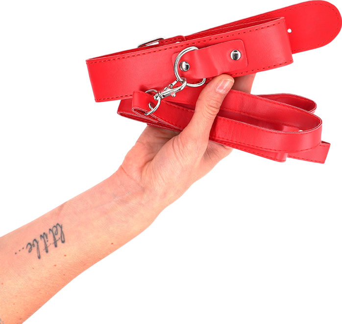 Η δερματίνη του χαϊδεύει απαλά τον λαιμό ενώ η ρυθμιζόμενη αγκράφα εξασφαλίζει τέλεια εφαρμογή. Το αποσπώμενο λουρί προσθέτει απόλυτο έλεγχο, επιτρέποντάς σου να ορίζεις πότε… και πού. Η μεταλλική αγκράφα με τον κρίκο φωνάζει υπεροχή, έτοιμη να σε οδηγήσει εκεί που τα όρια εξαφανίζονται.