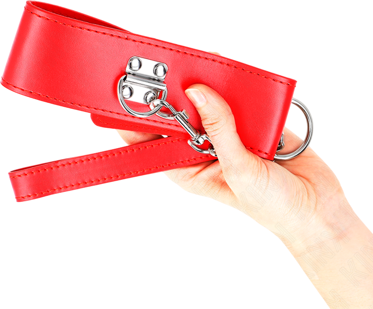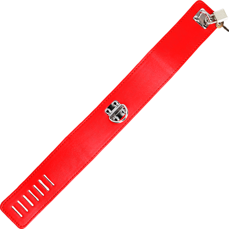Το κολάρο Kink Necklace With Belt With Wide Red Strap Adjustable δεν είναι απλώς ένα BDSM αξεσουάρ είναι ένα φλογερό statement εξουσίας. Η φαρδιά κόκκινη λωρίδα από δερματίνη τραβάει τα βλέμματα και υπόσχεται παιχνίδια που ξεπερνούν τα όρια.