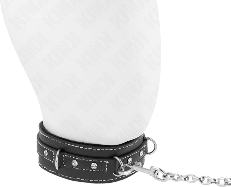 Η γυαλιστερή pvc δερματίνη σε συνδυασμό με τις διακοσμητικές πέτρες δημιουργεί μια εντυπωσιακή εμφάνιση, ιδανική για παιχνίδια υποταγής με στιλ. Το ρυθμιζόμενο λουρί προσαρμόζεται απόλυτα, ενώ ο μεταλλικός κρίκος σε καλεί να τον αξιοποιήσεις όπως ακριβώς σου αρέσει.