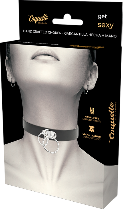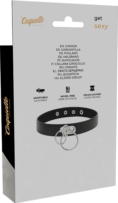 Με διπλό μεταλλικό κρίκο για ποικιλία επιλογών κατά τη διάρκεια του παιχνιδιού, αυτό το περιλαίμιο της Coquette θα σας γοητεύσει αμέσως χάρη στον λιτό του σχεδιασμό και την έντονη BDSM φιλοσοφία του.