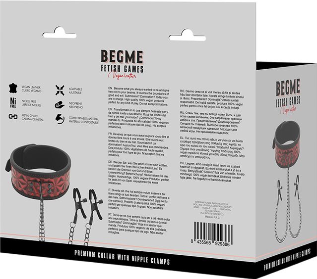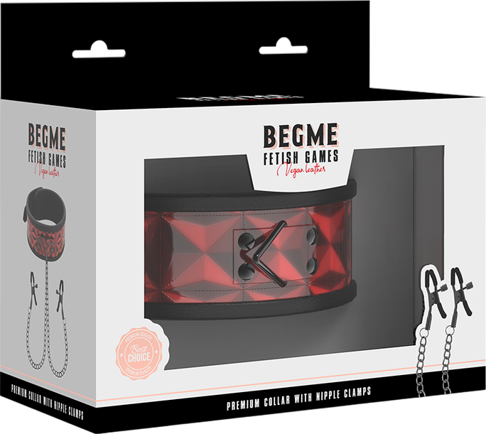 Αν θέλετε να προχωρήσετε ένα βήμα παρακάτω και να ζήσετε μια ολοκληρωμένη BDSM εμπειρία, η συλλογή Red Edition διαθέτει όλα τα αξεσουάρ που χρειάζεστε για το πετύχετε. Κατασκευασμένο από ποιοτικό δέρμα Vegan αυτό το περιλαίμιο της Begme έρχεται σε συνδυασμό με σφιγκτήρες θηλών και ασημένια αλυσίδα.