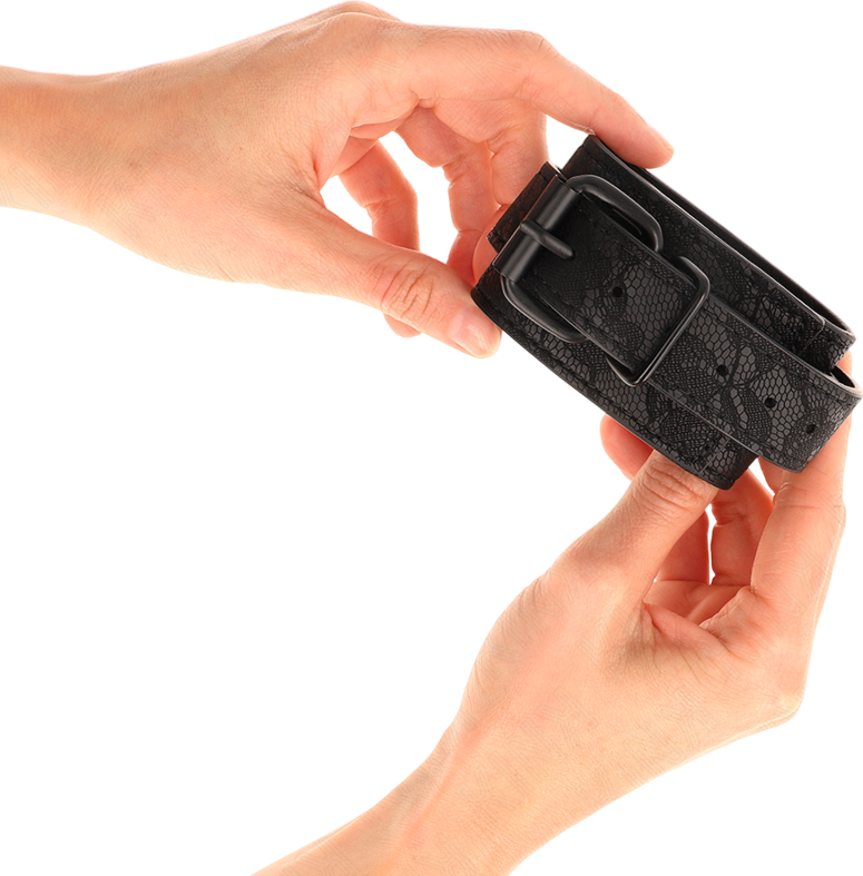 Ο μαλακός neoprene εσωτερικός πυρήνας εξασφαλίζει άνεση, ενώ η δαντελένια εξωτερική επένδυση χαρίζει μια ακαταμάχητα ερωτική αισθητική. Τα μεταλλικά δαχτυλίδια επιτρέπουν τη σύνδεση με αλυσίδες ή άλλες δεσμεύσεις, κάνοντας το παιχνίδι σου ακόμα πιο έντονο. Η ρυθμιζόμενη εφαρμογή επιτρέπει τον απόλυτο έλεγχο, είτε υποτάσσεσαι είτε επιβάλλεις την κυριαρχία σου.