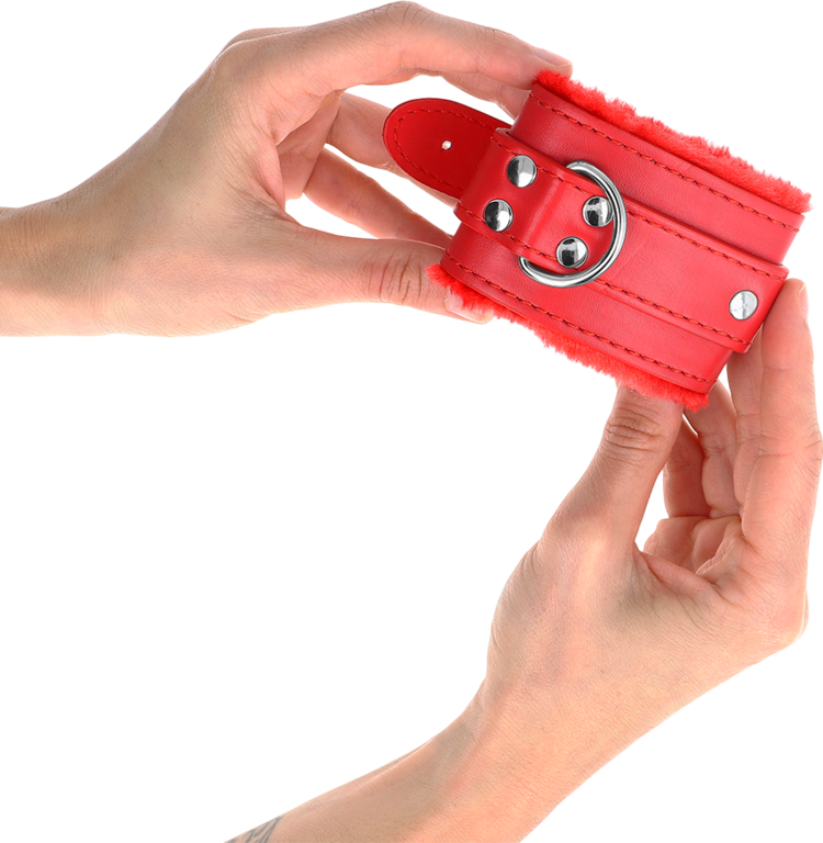 Bondage Δεσμά Καρπών Fur Lined Wrist Restraints Red With Belt Adjustable