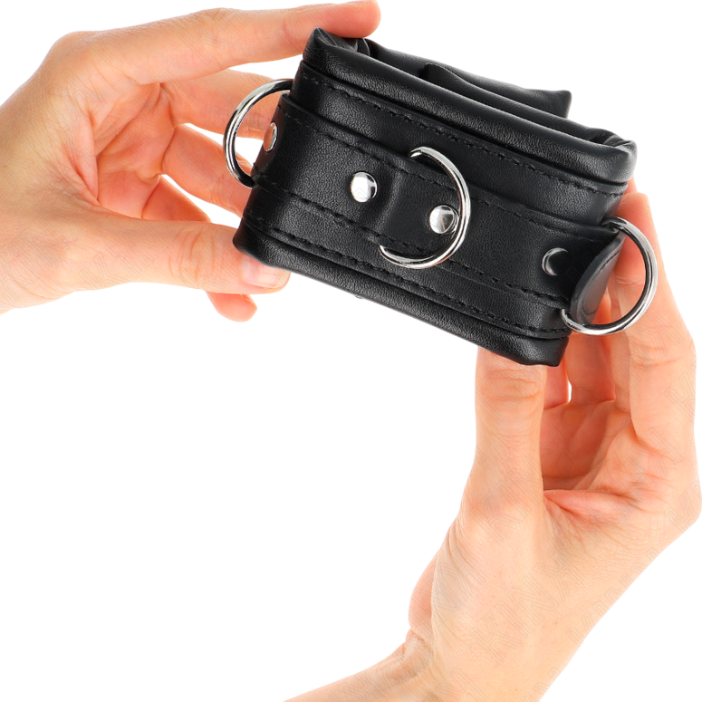 Κατασκευασμένα από ανθεκτική δερματίνη, αυτά τα δεσμά είναι ιδανικά για έντονες BDSM εμπειρίες, χωρίς να θυσιάζουν την άνεση. Η ρυθμιζόμενη εφαρμογή τους επιτρέπει τέλεια προσαρμογή σε κάθε καρπό, ενώ οι μεταλλικοί κρίκοι προσφέρουν εύκολη σύνδεση με αλυσίδες ή άλλα bondage αξεσουάρ. Το μαύρο χρώμα τους αποπνέει μυστήριο και αισθησιασμό, δίνοντας μια επιβλητική πινελιά σε κάθε συνεδρία