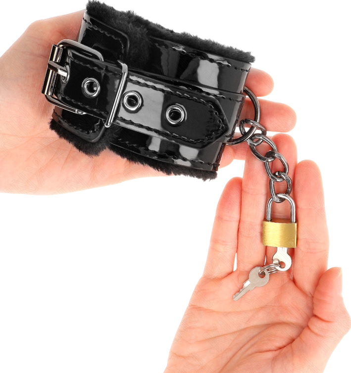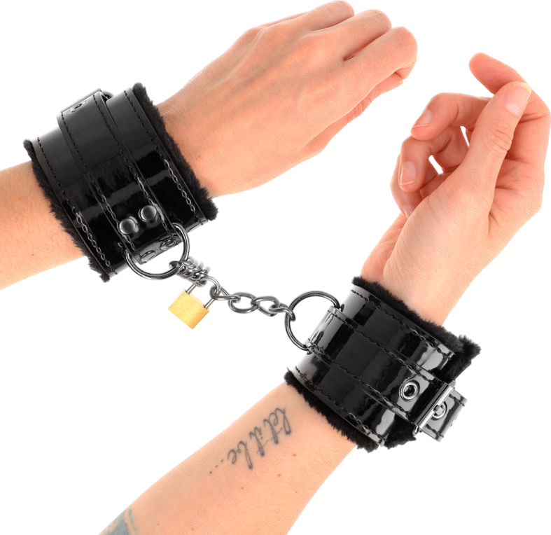 Κατασκευασμένα από υψηλής ποιότητας δερματίνη, αυτά τα δεσμά είναι ανθεκτικά αλλά ταυτόχρονα άνετα για παρατεταμένη χρήση. Το ρυθμιζόμενο κλείσιμό τους εξασφαλίζει άψογη εφαρμογή, ενώ οι μεταλλικοί κρίκοι επιτρέπουν εύκολη σύνδεση με αλυσίδες ή άλλα bondage αξεσουάρ. Το ιδιαίτερο χρώμα του κλειδώματος τους δίνει έναν αέρα πολυτέλειας και μυστηρίου