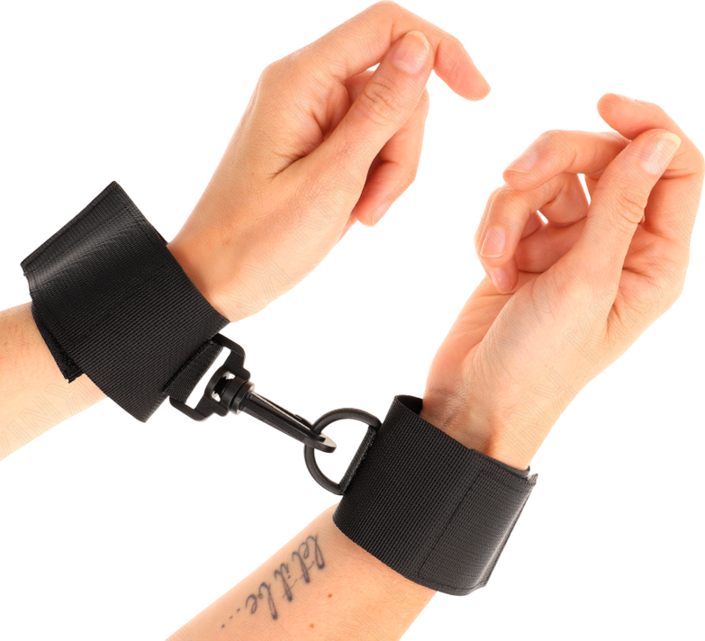 Κατασκευασμένα από υψηλής ποιότητας nylon, αγκαλιάζουν τους καρπούς χωρίς να τραυματίζουν, επιτρέποντας πολύωρα παιχνίδια χωρίς ενόχληση. Οι μεταλλικοί d-rings επιτρέπουν εύκολη σύνδεση με αλυσίδες, σχοινιά ή άλλα bondage αξεσουάρ, δίνοντάς σου τον πλήρη έλεγχο της απόλαυσης. Ο ρυθμιζόμενος σχεδιασμός εξασφαλίζει τέλεια εφαρμογή για κάθε μέγεθος καρπού.