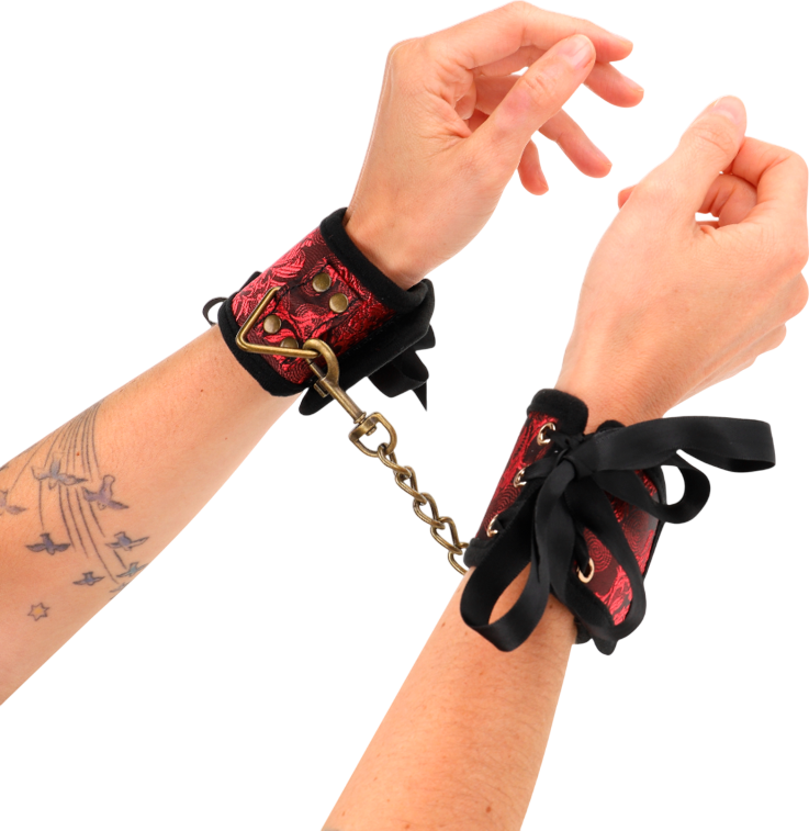 Η απαλή δαντέλα και το ανθεκτικό τους υλικό παρέχουν άνετη εφαρμογή και σταθερό κράτημα, εξασφαλίζοντας ασφάλεια σε κάθε σας κίνηση. Τα Scandal Wrist Restraints Red-black Lace Details είναι ρυθμιζόμενα και εφαρμόζουν τέλεια σε κάθε μέγεθος καρπού, κάνοντάς τα κατάλληλα τόσο για αρχάριους όσο και για έμπειρους χρήστες που επιθυμούν να ενισχύσουν την εμπειρία τους.