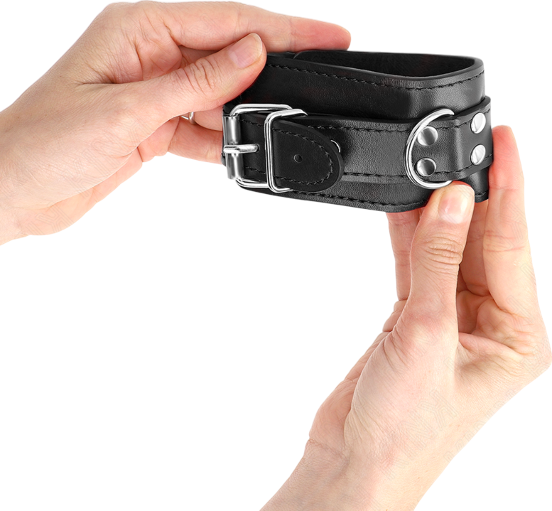Κατασκευασμένα από υψηλής ποιότητας δερματίνη, προσφέρουν ανθεκτικότητα και μοναδική αίσθηση στο δέρμα. Ο ρυθμιζόμενος σχεδιασμός τους επιτρέπει τέλεια εφαρμογή, ενώ οι μεταλλικοί κρίκοι τους επιτρέπουν εύκολη σύνδεση με αλυσίδες ή άλλα bondage αξεσουάρ. Το κλασικό μαύρο χρώμα τους δίνει μια διαχρονική BDSM αισθητική που ταιριάζει σε κάθε περίσταση