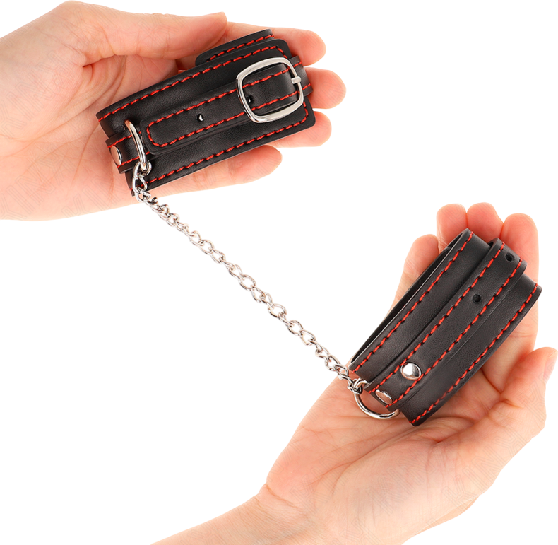 Αυτά τα δεσμά καρπών συνδυάζουν το διαχρονικό μαύρο με μια καυτή κόκκινη επένδυση, δημιουργώντας την τέλεια αντίθεση για αισθησιακές στιγμές. Η ρυθμιζόμενη εφαρμογή εξασφαλίζει άνεση και ασφάλεια, ενώ τα ανθεκτικά μεταλλικά στοιχεία σου δίνουν αμέτρητες δυνατότητες για πιο έντονο παιχνίδι. Ιδανικά τόσο για αρχάριους όσο και για έμπειρους λάτρεις του bondage.