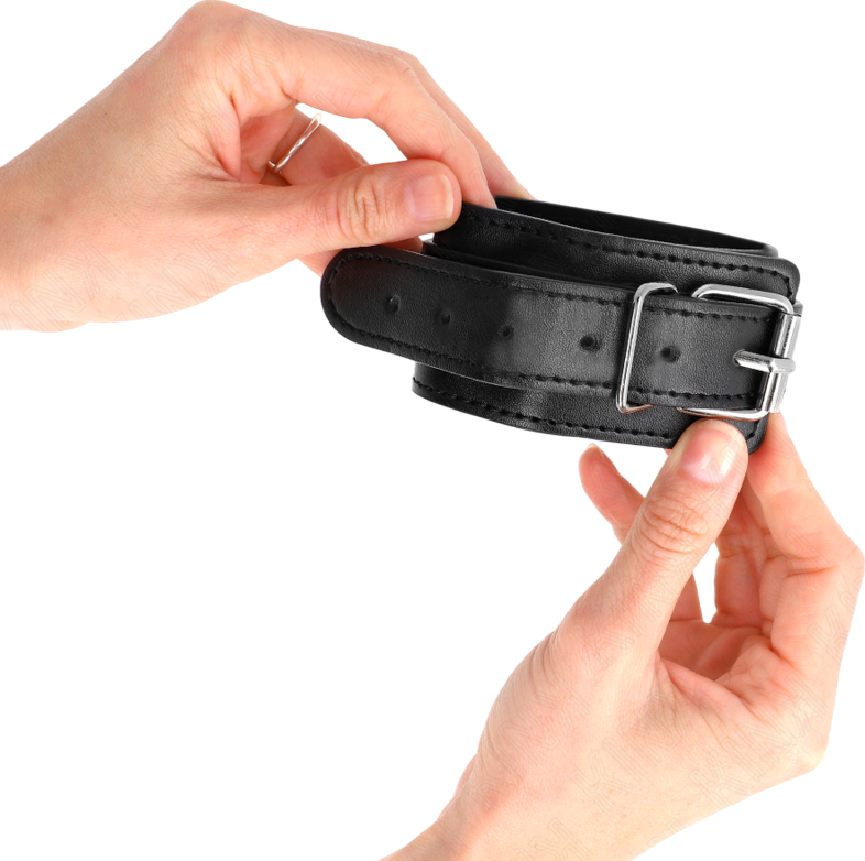 Κατασκευασμένα από υψηλής ποιότητας δερματίνη, αυτά τα δεσμά εφαρμόζουν απαλά στους καρπούς χωρίς να προκαλούν δυσφορία, ακόμα και σε παρατεταμένη χρήση. Οι ρυθμιζόμενοι ιμάντες εξασφαλίζουν τέλεια εφαρμογή σε κάθε μέγεθος, ενώ οι μεταλλικοί κρίκοι τους επιτρέπουν εύκολη σύνδεση με αλυσίδες ή άλλα bondage αξεσουάρ. Ο λεπτός τους σχεδιασμός προσθέτει μια πιο εκλεπτυσμένη αισθητική, διατηρώντας παράλληλα τη δύναμη και τη σταθερότητα που χρειάζεσαι