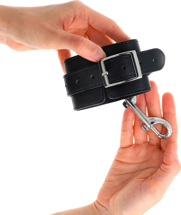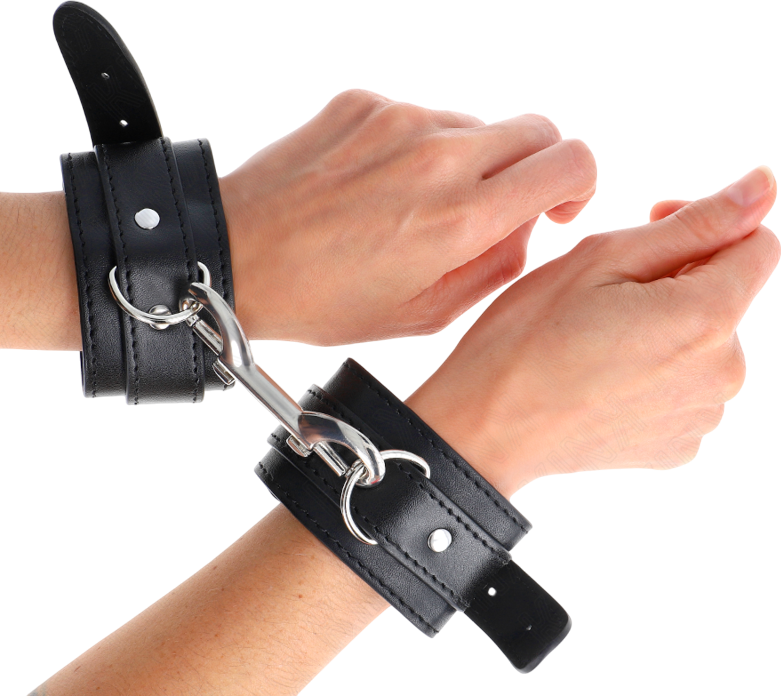 Κατασκευασμένα από υψηλής ποιότητας δερματίνη, αυτά τα δεσμά είναι ανθεκτικά, ενώ τα μεταλλικά τρουκς τους χαρίζουν μια τολμηρή εμφάνιση. Χάρη στην ρυθμιζόμενη αγκράφα, προσαρμόζονται τέλεια στον καρπό σου, χαρίζοντας άνεση και ασφάλεια σε κάθε σενάριο BDSM.