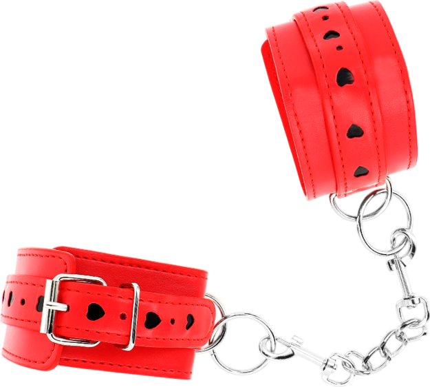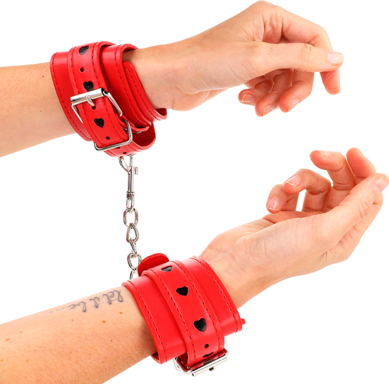 Bondage Δεσμά Καρπών Red Wrist Restraints With Black Heart Inlay Adjustable
