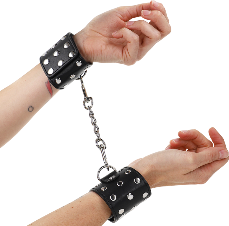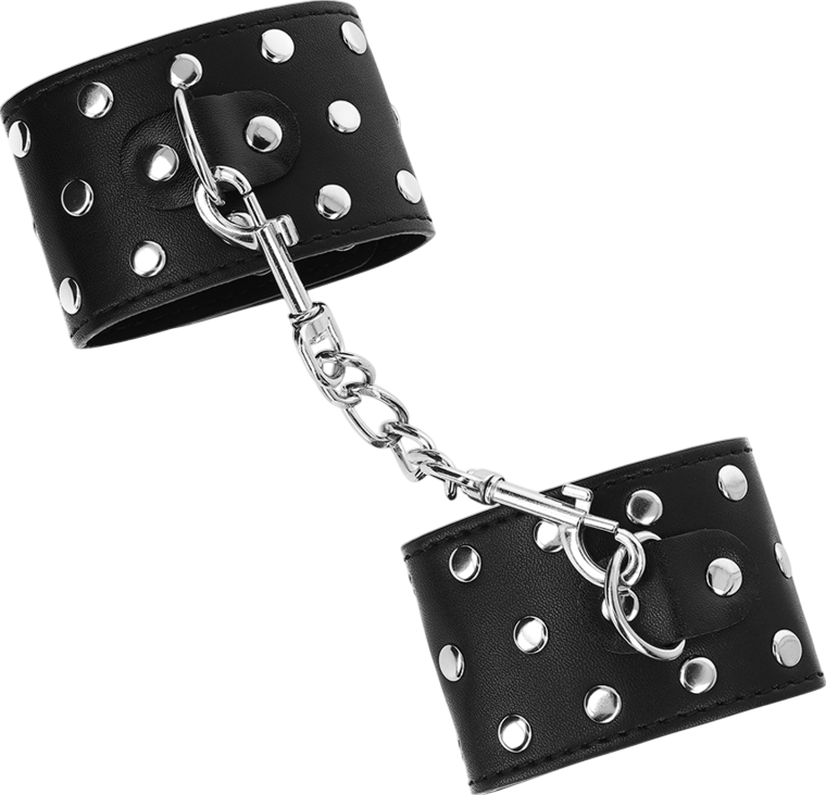 Bondage Δεσμά Καρπών Wrist Restraints With Snap Fasten Full Of Rivets Black Adjustable