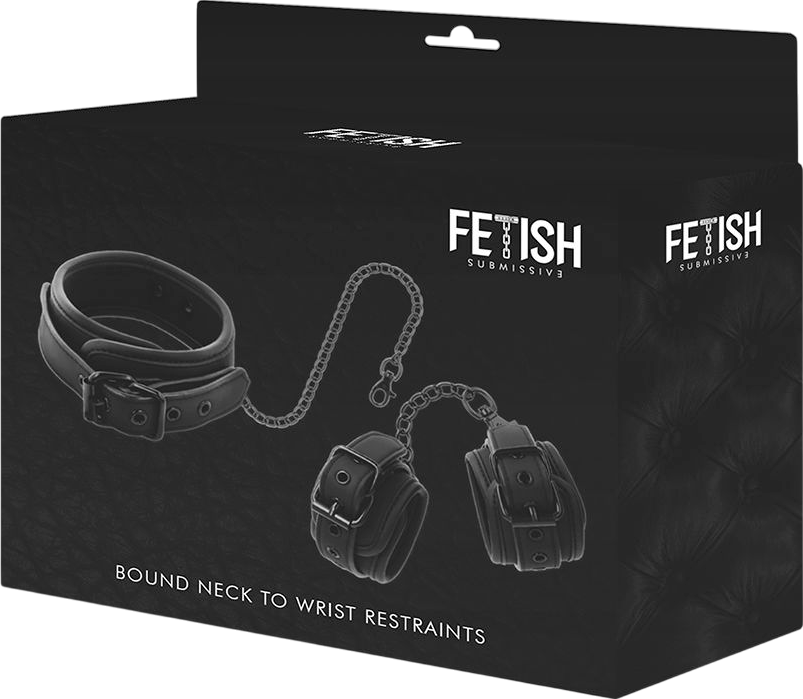 Αυτό το κομψό bondage set περιλαμβάνει μαλακές και πολύ ανθεκτικές χειροπέδες, και ένα κολάρο για το λαιμό με αλυσίδα για το ενώσετε με τις χειροπέδες.