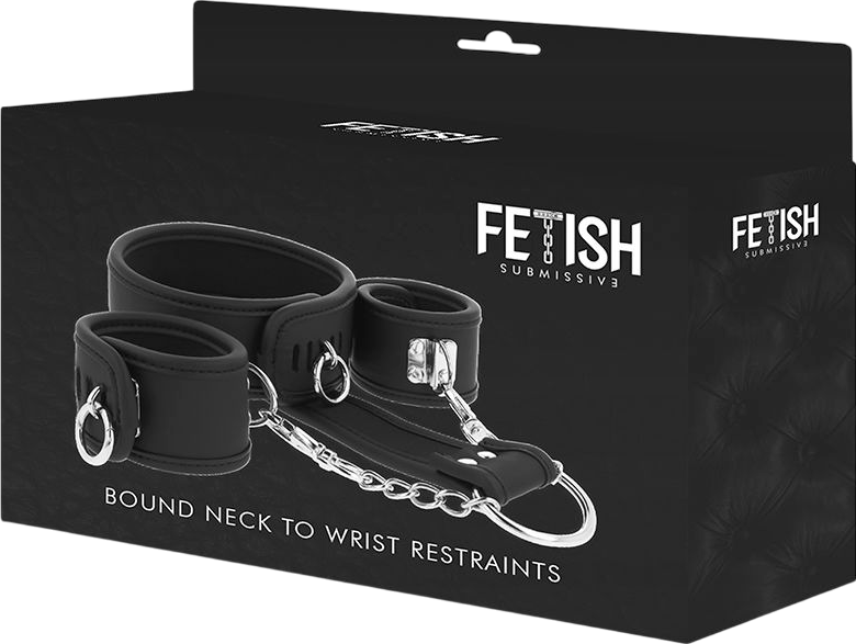 Αυτό το κομψό bondage set περιλαμβάνει μαλακές και πολύ ανθεκτικές χειροπέδες, και ένα κολάρο για το λαιμό με αλυσίδα για το ενώσετε με τις χειροπέδες.