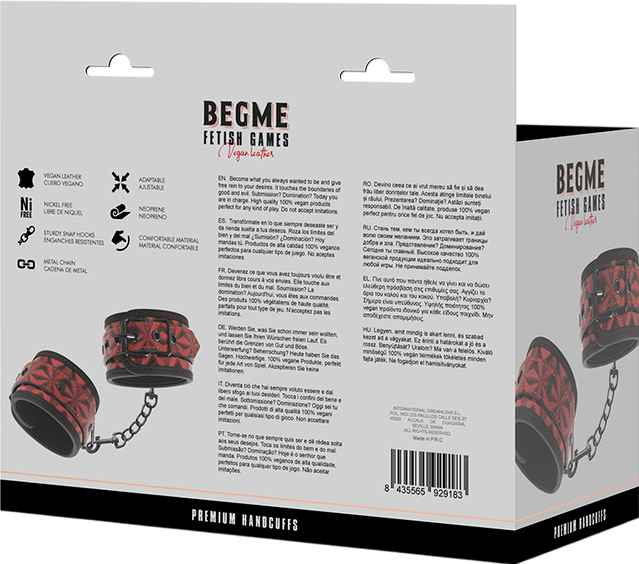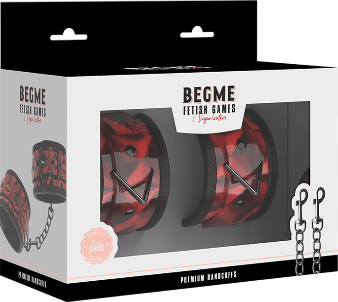 Ένας συνδυασμός κόλαση ικανός να ξυπνήσει τις πιο κρυφές σας επιθυμίες. Οι χειροπέδες Begme της σειράς Red Edition εγγυώνται να κάνουν καλά αυτό που ξέρουν. Δέστε σφιχτά το υποτακτικό σας θήραμα και μπείτε για τα καλά στον κόσμο των παιχνιδιών υποταγής.