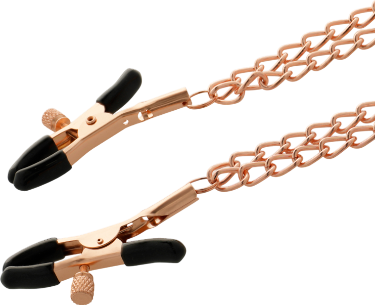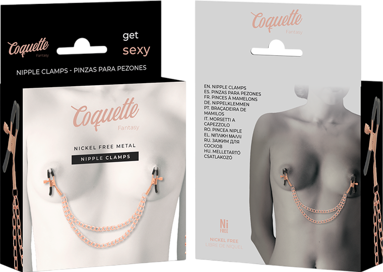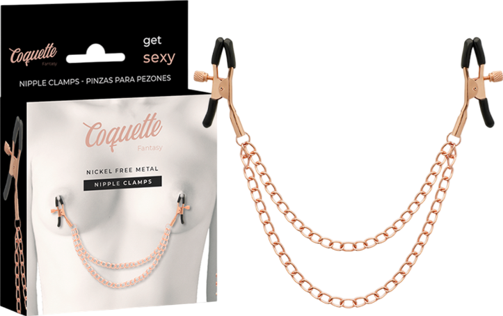 Αυτές οι σφιγκτήρες θηλών από την Coquette Chic Desire είναι unisex και πολύ εύκολοι στη χρήση. Τα κλιπ και η αλυσίδα είναι κατασκευασμένα από μέταλλο χωρίς νικέλιο και αποτελούν το καλύτερο συμπλήρωμα για την BDSM συλλογή σας. Η ειδική βίδα ρύθμισης σας επιτρέπει να βρείτε την επιθυμητή για εσάς πίεση, ενώ το βάρος και η κίνηση της αλυσίδας εντείνουν την διέγερση στις θηλών.