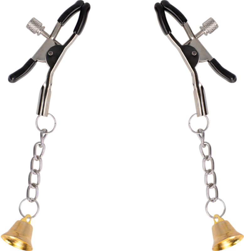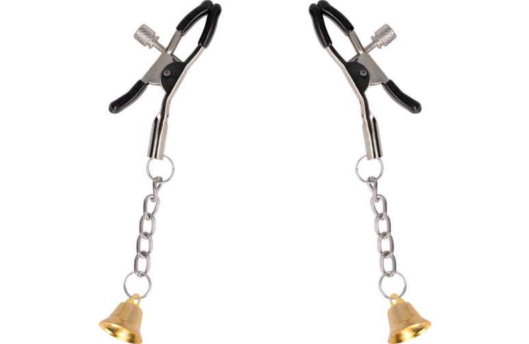 Η αίσθηση της πίεσης ενισχύεται από το βάρος και την κίνηση των καμπανών, δημιουργώντας ένα ερεθιστικό παιχνίδι ανάμεσα στον πόθο και την υποταγή. Οι λεπτομέρειες σε χρυσό χρώμα δίνουν έναν τόνο πολυτέλειας και απόλυτου ερωτισμού, μετατρέποντας τους σφιγκτήρες σε αληθινό φετίχ αντικείμενο για απαιτητικές παίκτριες.