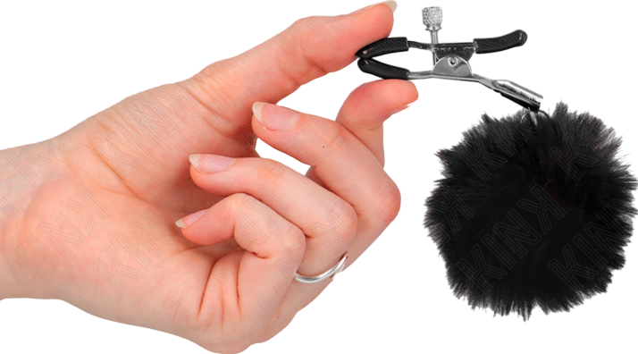 Οι ρυθμιζόμενοι σφιγκτήρες σου δίνουν πλήρη έλεγχο της πίεσης, για να παίξεις όπως εσύ θέλεις — από ελαφρύ γαργαλητό μέχρι τσούξιμο γεμάτο ηδονή. Τα μαύρα φουντωτά pom poms στο τελείωμα χαρίζουν μια φλερταριστή, σχεδόν θεατρική αίσθηση, κάνοντας κάθε σου κίνηση θέαμα. Είναι ιδανικά για να εντυπωσιάσεις και να κατακτήσεις με στιλ.