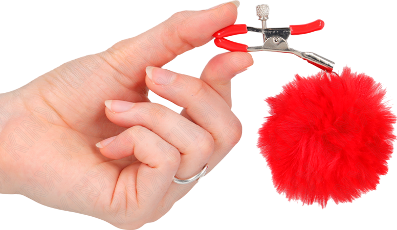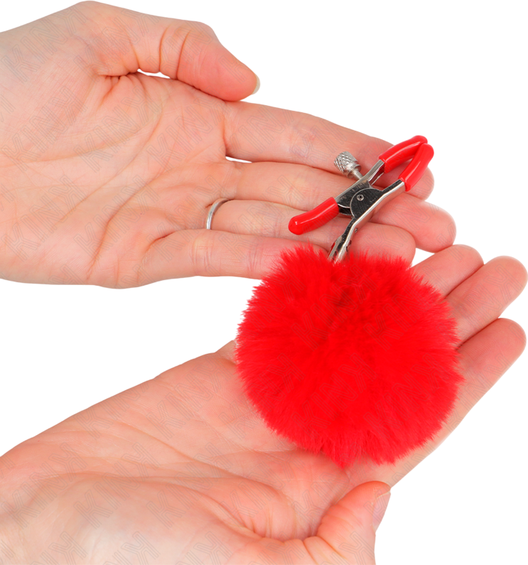 Μεταλλικοί Σφιγκτήρες Θηλών Faux Fur Ball Nipple Clamp Red
