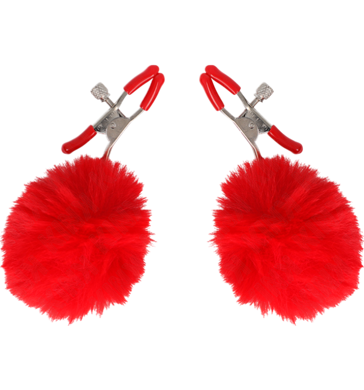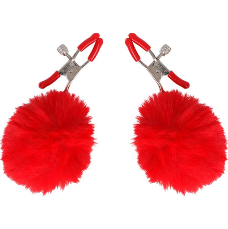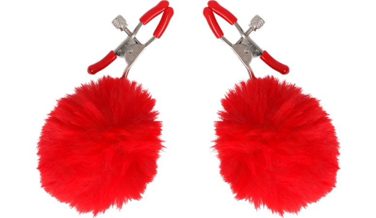 Μεταλλικοί Σφιγκτήρες Θηλών Faux Fur Ball Nipple Clamp Red