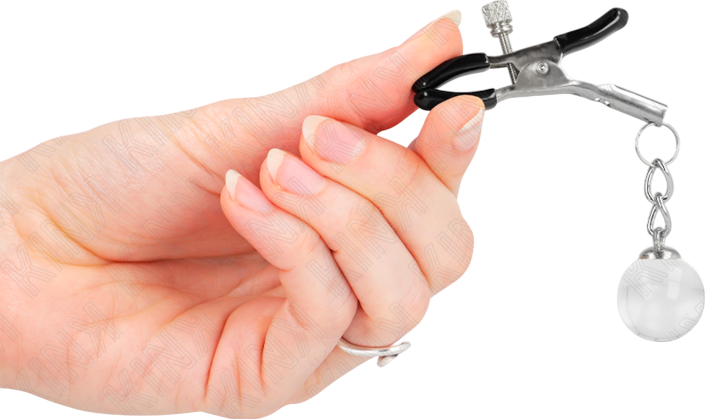 Αν λαχταράς οι θηλές σου να νιώσουν την πολυτέλεια μέσα από τον πόνο, τότε οι σφιγκτήρες Kink Glass Bead Nipple Clamps Silver είναι αυτό που περίμενες. Δύο μεταλλικοί, ρυθμιζόμενοι σφιγκτήρες αγκαλιάζουν τις θηλές σου με ακρίβεια, ενώ στο τελείωμά τους αιωρούνται δύο γυάλινες μπίλιες σε λευκή μαργαριταρένια απόχρωση ερωτικές, κομψές και ανελέητα αισθησιακές.