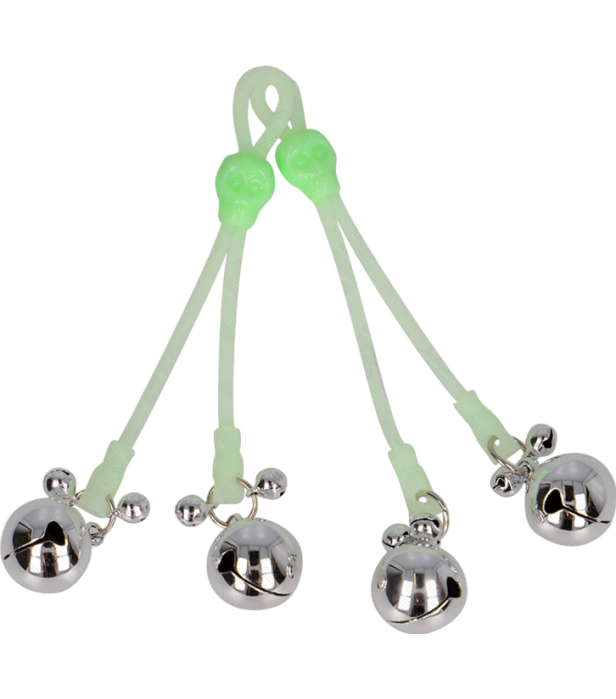 Μεταλλικοί Σφιγκτήρες Θηλών Luminous Skull Nipple Clamps With Ring Bells Adjustable Green/silver