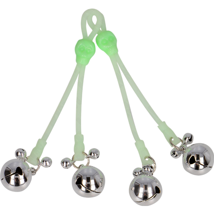Με μεταλλικά κουδουνάκια που χτυπούν απαλά σε κάθε κούνημα, ο ήχος γίνεται μέρος της διέγερσης. Οι σφιγκτήρες είναι πλήρως ρυθμιζόμενοι, ώστε να προσαρμόζονται στη διάθεσή σου  από απαλό τσίμπημα μέχρι βασανιστικά γλυκό σφίξιμο. Ιδανικό για ζευγάρια που θέλουν να παίξουν με όρια και φαντασιώσεις.
