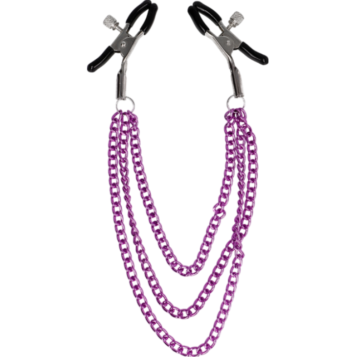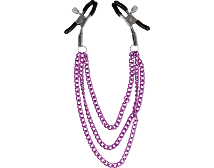 Μεταλλικοί Σφιγκτήρες Θηλών Nipple Clamps With 3 Chains Purple 20/23/28 εκ.