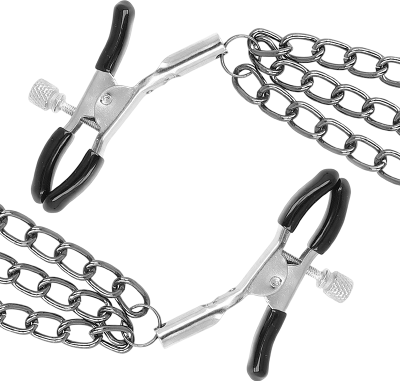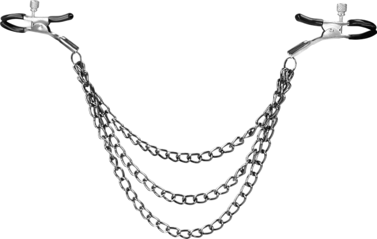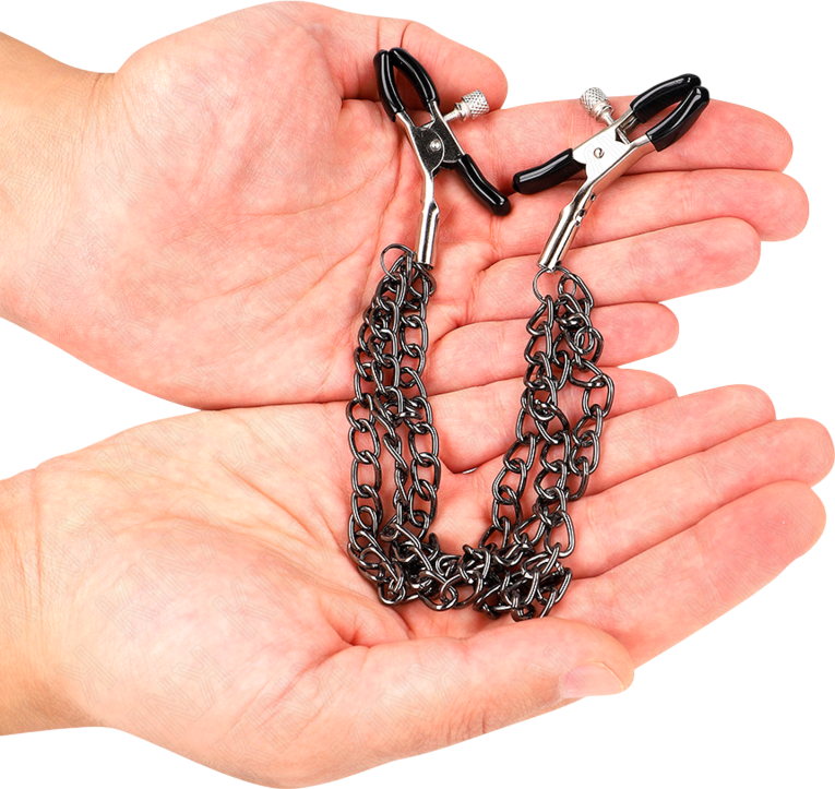 Οι σφιγκτήρες ρυθμίζονται εύκολα για να πετύχεις ακριβώς την πίεση που θέλεις από παιχνιδιάρικο τσίμπημα μέχρι βαθύ, ανατριχιαστικό σφίξιμο. Οι αλυσίδες τους δεν είναι μόνο για εφέ: κάθε τους κίνηση προσφέρει ένα επιπλέον βάρος, μια πρόκληση, ένα τελετουργικό υποταγής που κάνει τις θηλές να γίνουν κέντρο της προσοχής. Το υλικό είναι στιβαρό, οι λεπτομέρειες πολυτελείς και η αίσθηση… ανελέητα ερεθιστική.