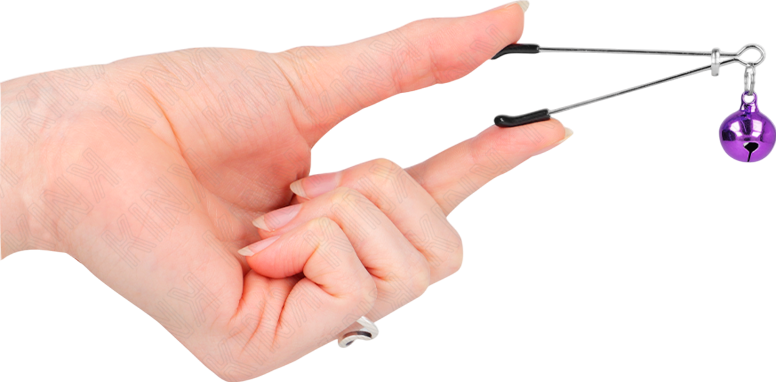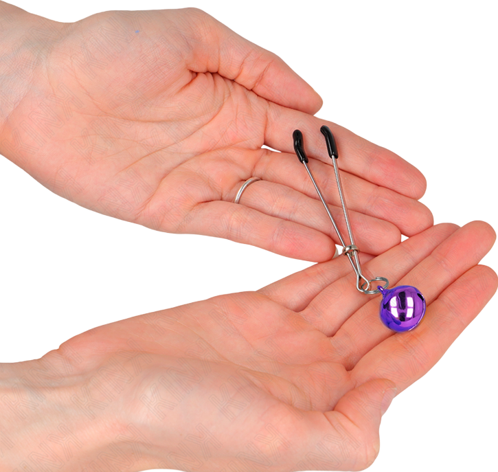 Η λεπτή μεταλλική κατασκευή τους σε προκαλεί με κάθε άγγιγμα, ενώ οι μαλακές μαύρες άκρες φροντίζουν τις θηλές σου με απόλυτη ασφάλεια. Κάθε ήχος από τις μωβ καμπανούλες εντείνει την ένταση, προσθέτοντας μια διάσταση ηχητικής διέγερσης στο kinky παιχνίδι σου. Μικρές κινήσεις, μεγάλα ρίγη.