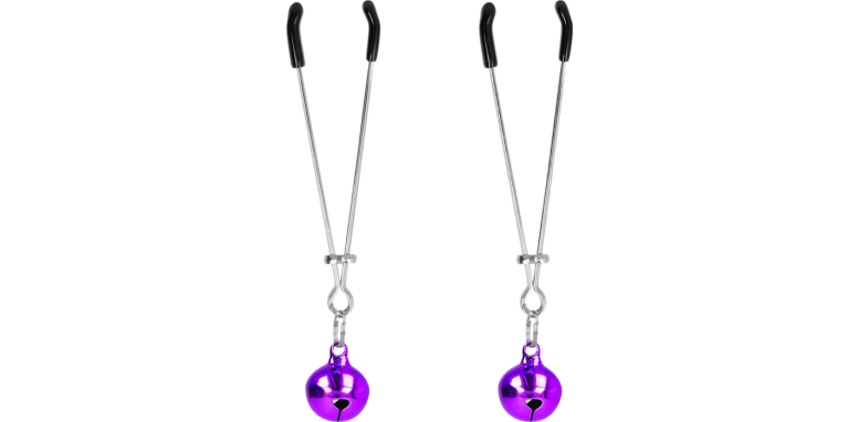 Η λεπτή μεταλλική κατασκευή τους σε προκαλεί με κάθε άγγιγμα, ενώ οι μαλακές μαύρες άκρες φροντίζουν τις θηλές σου με απόλυτη ασφάλεια. Κάθε ήχος από τις μωβ καμπανούλες εντείνει την ένταση, προσθέτοντας μια διάσταση ηχητικής διέγερσης στο kinky παιχνίδι σου. Μικρές κινήσεις, μεγάλα ρίγη.