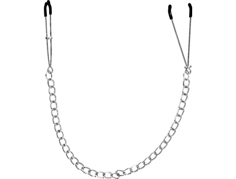 Ιδανικοί για ρόλους υποταγής, οι σφιγκτήρες αυτοί προκαλούν έναν ερεθισμό που εξελίσσεται σε καθαρή ηδονή όσο περνά η ώρα. Το μεταλλικό φινίρισμα γυαλίζει με κάθε κίνηση, ενώ η αλυσίδα προσφέρεται για επιπλέον χειρισμούς, τραβήγματα ή και σύνδεση με άλλα αξεσουάρ bondage.