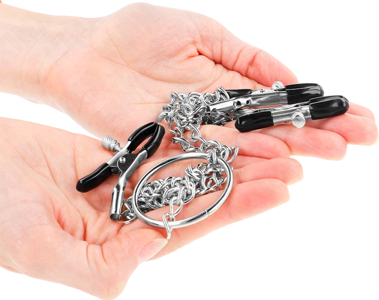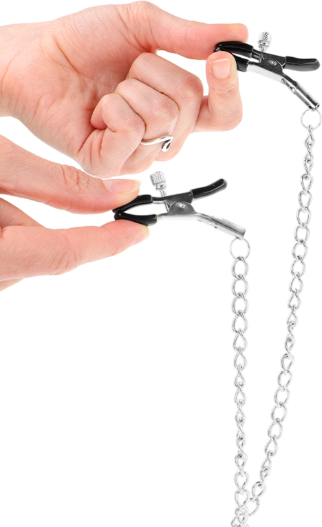 Το παγωμένο άγγιγμα του μετάλλου πάνω στο δέρμα σε ξυπνά, ενώ κάθε κίνηση των αλυσίδων προκαλεί διακριτά τραβήγματα, προσφέροντας συνεχή διέγερση. Οι σφιγκτήρες είναι επενδυμένοι για ασφαλή, αλλά έντονη εφαρμογή, ενώ η ρύθμιση πίεσης σου επιτρέπει να επιλέξεις το επίπεδο έντασης που σου ταιριάζει. Ιδανικό για παιχνίδια εξουσίας, ρόλων ή απλώς για όσες θέλουν να νιώσουν τον παλμό του ερεθισμού σε κάθε τους αναπνοή.