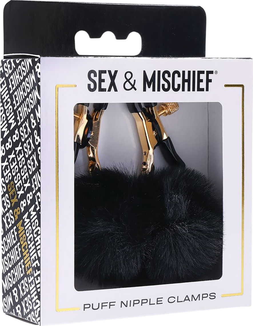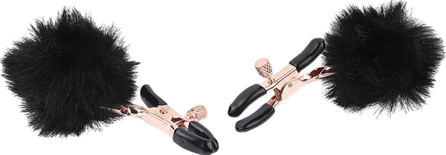 Οι Sex & Mischief Puff Nipple Clamps είναι το ιδανικό παιχνίδι για να προσθέσεις μια αίσθηση πολυτέλειας, αισθησιασμού και ήπιας υποταγής στο ερωτικό σου παιχνίδι. Οι λεπτές μαύρες φουντίτσες αιωρούνται ελαφρά με κάθε κίνηση, προσθέτοντας ένα άγγιγμα φλερτ και σκανταλιάς που μαγνητίζει το βλέμμα. Οι μεταλλικοί σφιγκτήρες με rose gold απόχρωση προσφέρουν όχι μόνο λειτουργικότητα αλλά και αισθητική.