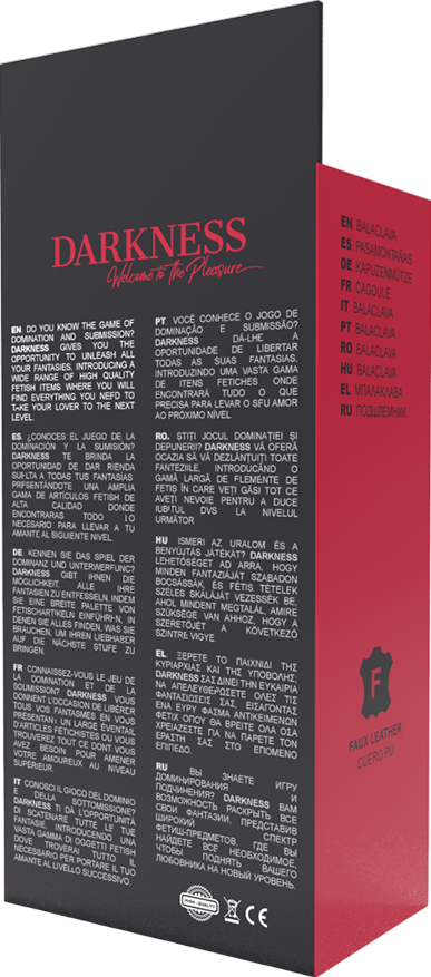 Η Darkness είναι μια μάρκα νέας γενιάς, όλα τα υλικά μας είναι εξαιρετικής ποιότητας εξασφαλίζοντας ότι η κατασκευή εξασφαλιζει ένα τέλειο αποτέλεσμα για αρχάριους ή προχωρημένους που τους αρέσει ο κόσμος του φετίχ ή του bdsm.