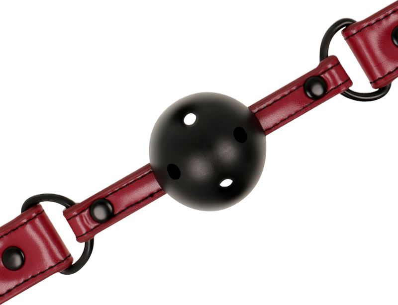 Σχεδιασμένο με μη τοξικά υλικά και τρύπες αναπνοής για την άνεση του υποτακτικού σας, το φίμωτρο Dark Room Breathable Gag έρχεται σε πανέμορφο και ιδιαίτερο μπορντό χρωματισμό συνδυασμένο με μαύρες λεπτομέρειες.