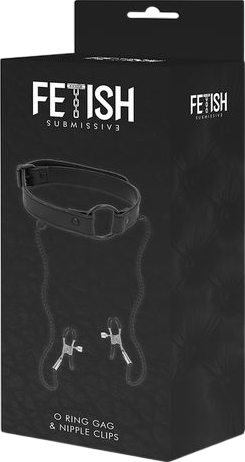 Φίμωτρο από Vegan δέρμα με ενσωματωμένους σφιγκτήρες θηλών! Το φίμωτρο κρατάει ανοικτό το στόμα (O-ring κρίκος) και τα κλιπς θηλών που διαθέτουν βιδάκια θα σας βοηθήσουν να ορίζετε την πίεση στις θηλές.