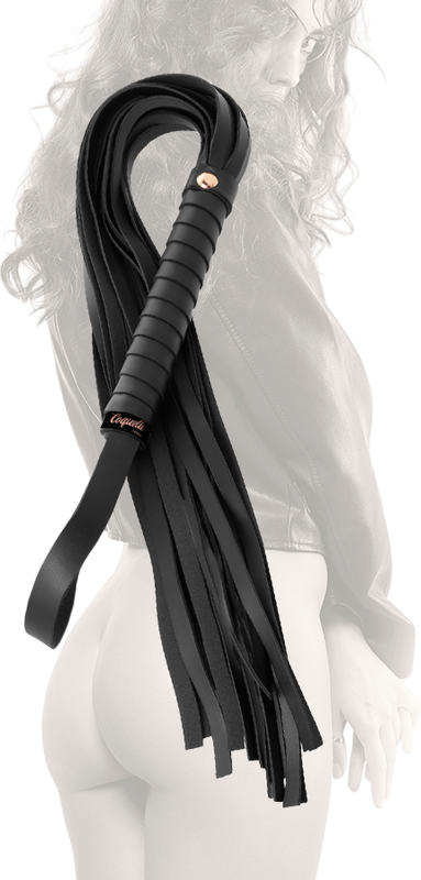Κατασκευασμένο από ανθεκτικό και ποιοτικό δέρμα Vegan, διαθέτει άνετη εργονομική λαβή και μαλακές λωρίδες ικανές να υποτάξουν εμφαντικά το υποτακτικό σας θύμα. Βαθύ μαύρο με μικρά στοιχεία ροζ χρυσού χρώματος συνθέτουν ένα κομψό και ταυτόχρονα επιβλητικό αξεσουάρ που πρέπει να εντάξετε στο δυναμικό σας.