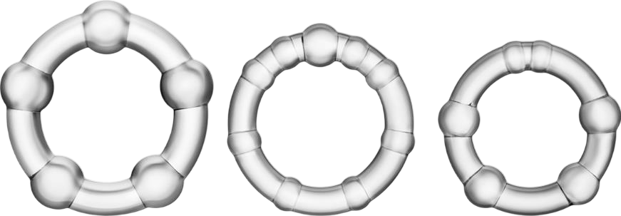 Το μικρό δαχτυλίδι είναι ιδανικό για μέγιστες στύσεις, το μεσαίο δαχτυλίδι για σκληρές στύσεις ενώ το μεγάλο δαχτυλίδι μπορεί να φορεθεί γύρω από τους όρχεις και το όσχεο και να συμβάλει σημαντικά κατά της πρόωρης εκσπερμάτωσης. Είναι κατασκευασμένα από TPE υλικό εξαιρετικά ελαστικό και άνετο που αναπτύχθηκε ειδικά για την ασφάλεια και την υγιεινή σας κατά τη διάρκεια της ερωτικής επαφής.