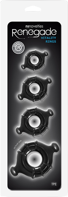 - Σετ 4 δαχτυλίδια πέους Renegate Vitality Rings σε μαύρο χρώμα