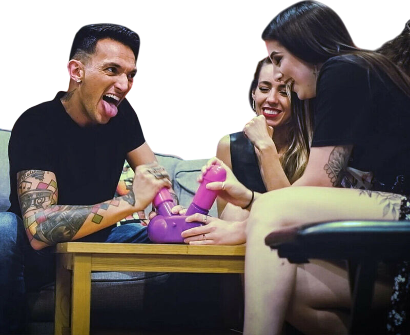 Πριν ξεκινήσετε, ρίξτε το υγρό στην τρύπα που βρίσκεται ανάμεσα στα δύο άκρα. Συνιστούμε νερό, αλλά μπορεί επίσης να χρησιμοποιηθεί οποιοδήποτε ασφαλές για κατανάλωση υγρό. Ο σκοπός του παιχνιδιού είναι να αντλήσετε τα πέη όσο το δυνατόν πιο γρήγορα για να είστε ο πρώτος παίκτης που θα εκτοξεύσει τον αντίπαλό του στο πρόσωπο ή στο στόμα.