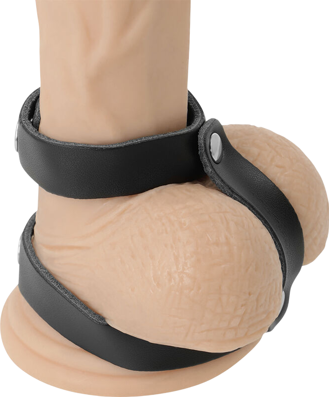 Κατασκευασμένο από μαλακό συνθετικό δέρμα, το διπλό αυτό δαχτυλίδι μπορεί να φορεθεί ταυτόχρονα στο πέος και στους όρχεις ενώ είναι ρυθμιζόμενο για άνεση και τέλεια εφαρμογή.