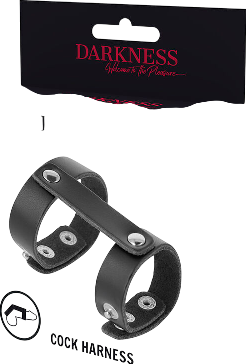 - Διπλό δαχτυλίδι πέους Darkness Cock Harness Adjustable Leather Penis And Testicles Ring σε μαύρο χρώμα