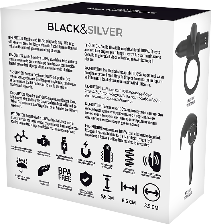 Αυτό το υπέροχο δαχτυλίδι πέους έρχεται θέλει να γλυκάνει τις spicy στιγμές σας. Με το Black&Silver Ring μπορείτε να ενισχύσετε κατάλληλα το πέος σας μετατρέποντας το σε μία ακαταμάχητη μηχανή απόλαυσης. Με τη μεταξένια απαλή, επιφάνεια από ιατρική σιλικόνη, το Black&Silver σας βάζει σε ένα αισθησιακό mood με το που το φορέσετε.