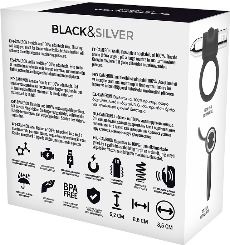 Αυτό το υπέροχο δαχτυλίδι πέους έρχεται θέλει να γλυκάνει τις spicy στιγμές σας. Με το Black&Silver Ring μπορείτε να ενισχύσετε κατάλληλα το πέος σας μετατρέποντας το σε μία ακαταμάχητη μηχανή απόλαυσης. Με τη μεταξένια απαλή, επιφάνεια από ιατρική σιλικόνη, το Black&Silver σας βάζει σε ένα αισθησιακό mood με το που το φορέσετε.