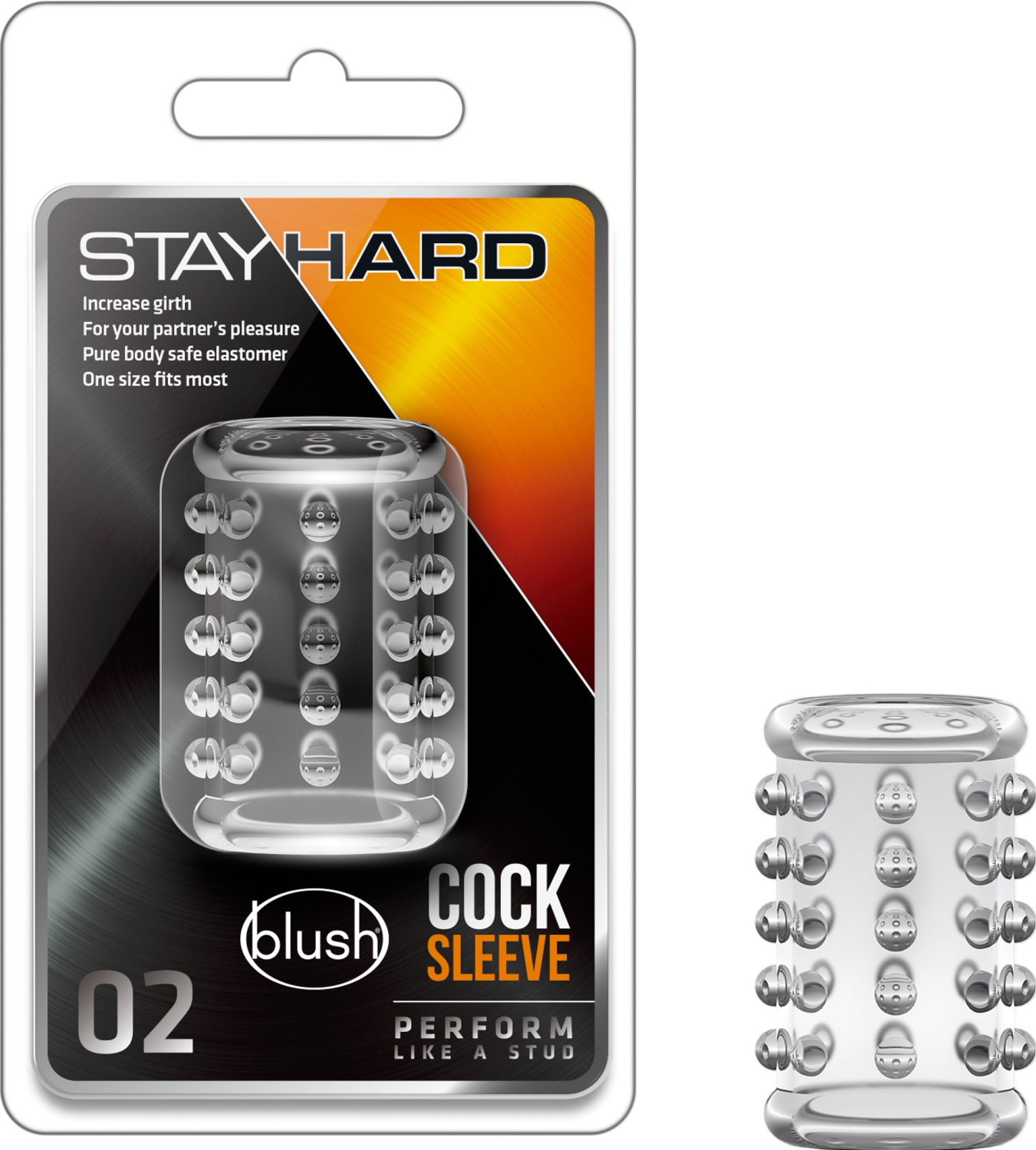 Το Stay Hard Cock Sleeve 02 είναι κατασκευασμένο από ποιοτικό TPE και φέρει στην επιφάνεια του ένα σύνολο από κουκκίδες ικανές να της προκαλέσουν απίστευτη διέγερση. Είναι εξαιρετικά ελαστικό και μπορεί να εφαρμόσει τέλεια σε κάθε μέγεθος πέους χωρίς να ενοχλεί. Επιπλέον μπορείτε να το χρησιμοποιήσετε με την ίδια επιτυχία στον αγαπημένο σας δονητή και να απολαύσετε μαζί του ένα άκρως αισθησιακό solo παιχνίδι.